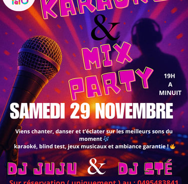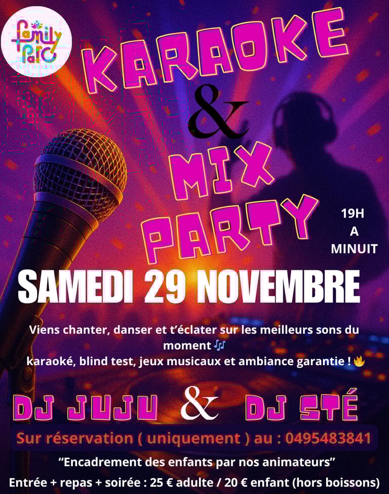 🍽 Entrée, repas et soirée compris : 25 € adulte / 20 € enfant hors boissons