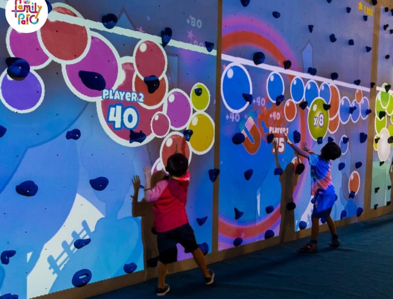 Grimpe sur les prises et laisse-toi emporter par des jeux qui s’affichent sur le mur ! Tape les chauves-souris dans Whack-a-Bat, suis les parcours lumineux, marque des points en direct avec tes amis… De l’escalade mêlée à du jeu vidéo, irrésistible pour les enfants (et les parents) !