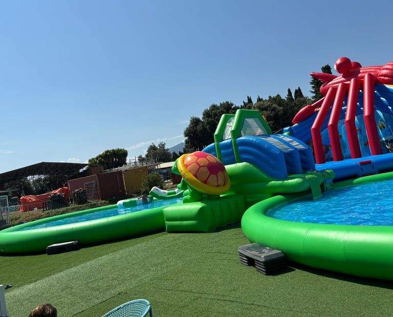 Venez profiter de notre parc aquatique géant : toboggans, structures gonflables et espaces de jeux vous attendent pour une journée pleine de rires et de fraîcheur. En famille ou entre amis, préparez-vous à vivre un été inoubliable sous le signe du fun et de la bonne humeur !