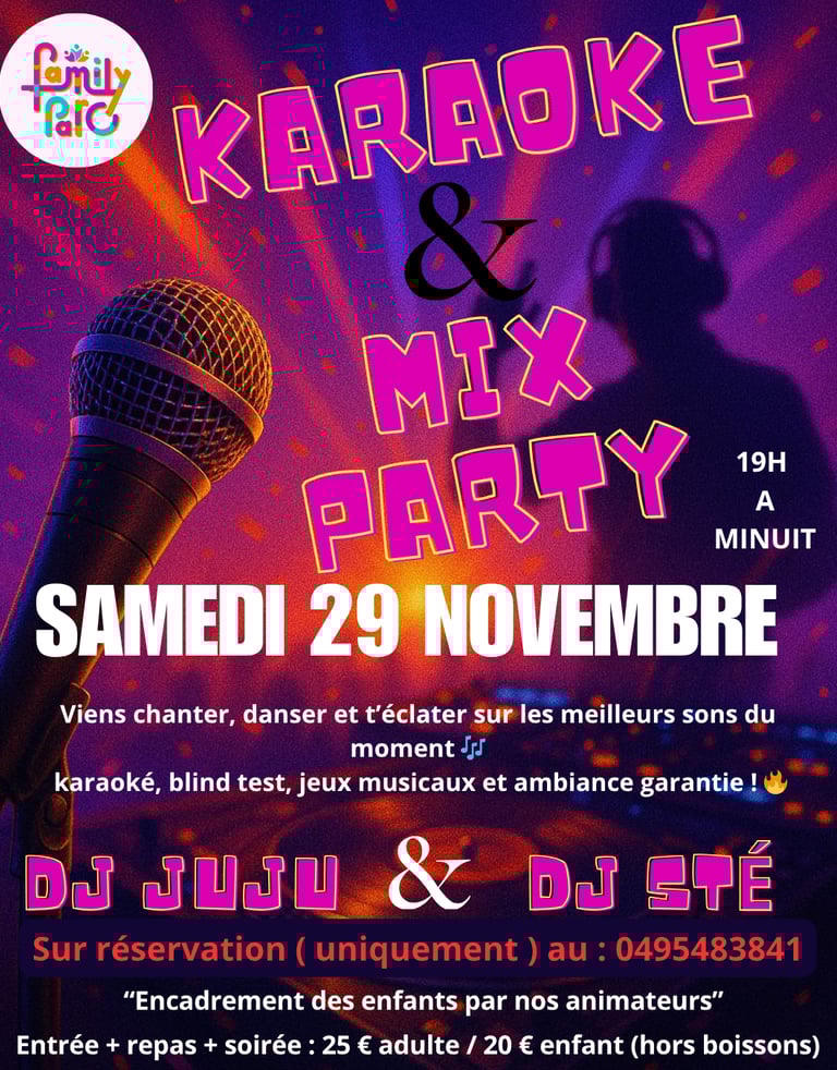 🍽 Entrée, repas et soirée compris : 25 € adulte / 20 € enfant hors boissons